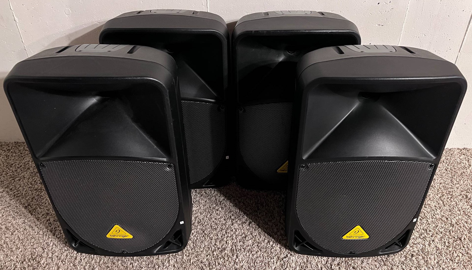 - Stage wedges: Behringer B112D (12″ 1000W) (x 4)