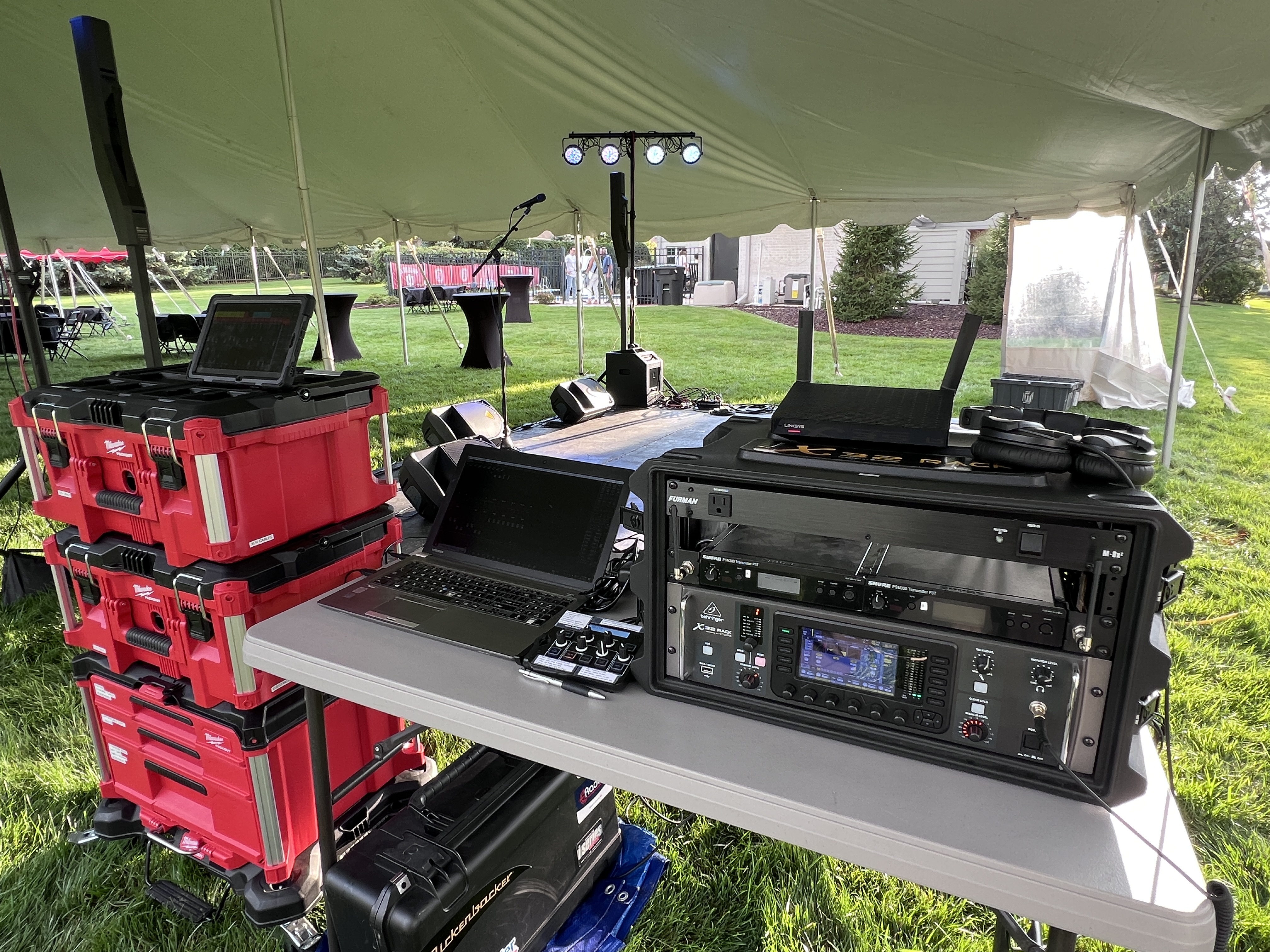 - Mixing Console: Behringer X32 Rack digital mixer (Tablet Controlled)