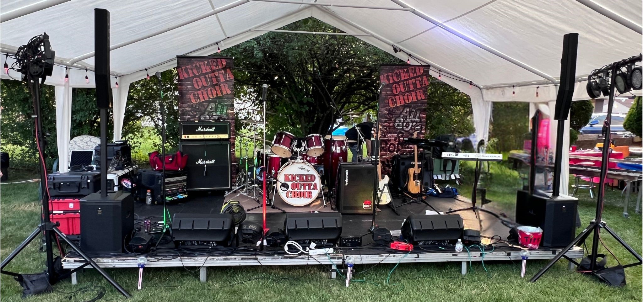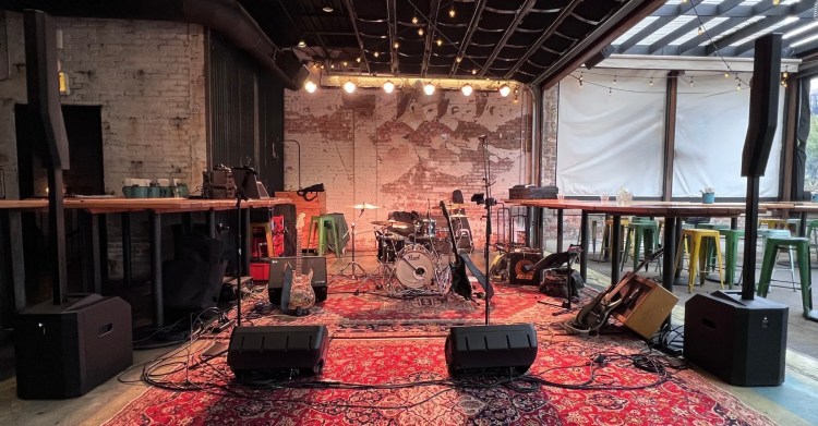 - PA: EV Evolve 50 Column Array Speakers (12″ sub + 3.5″ x 8 column array, 1000W) (x 2)